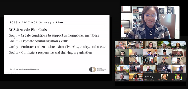 On Friday, April 11, delegates of NCA’s Legislative Assembly (LA) gathered virtually for the first meeting of the year. The session focused on providing key updates on initiatives tied to the Strategic Plan and IDEA Strategic Plan goals, as well as conducting essential Association business. A total of 93 delegates participated.